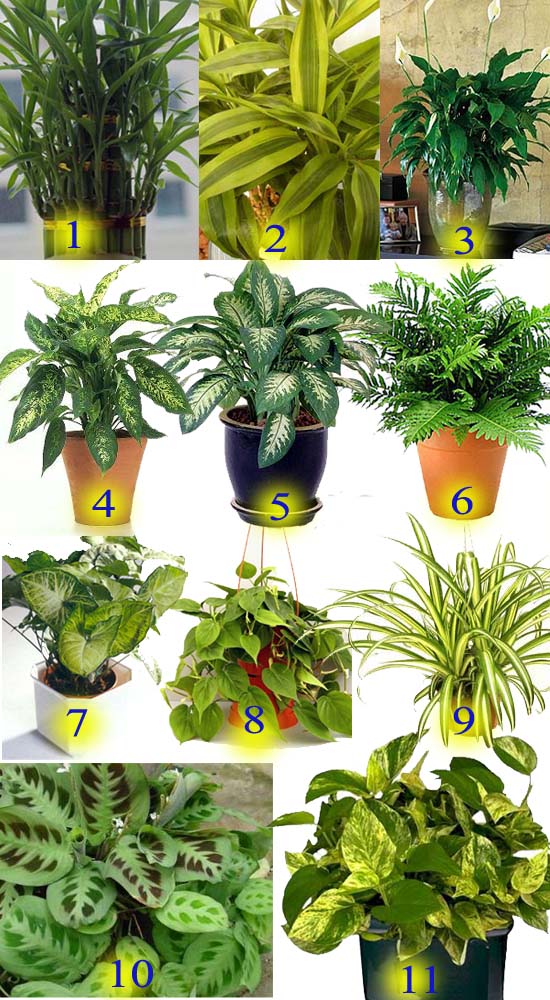 1. Phát Lộc; 2. Tứ Lan; 3. Lan Ý; 4. Huy Hoàng; 5. Vạn Niên Thanh; 6. Dương Xỉ; 7. Tróc Bạc; 8. Trái Tim; 9. Mẫu Tử; 10. Đuôi Công; 11. Trầu Bà Lá Nhỏ;...